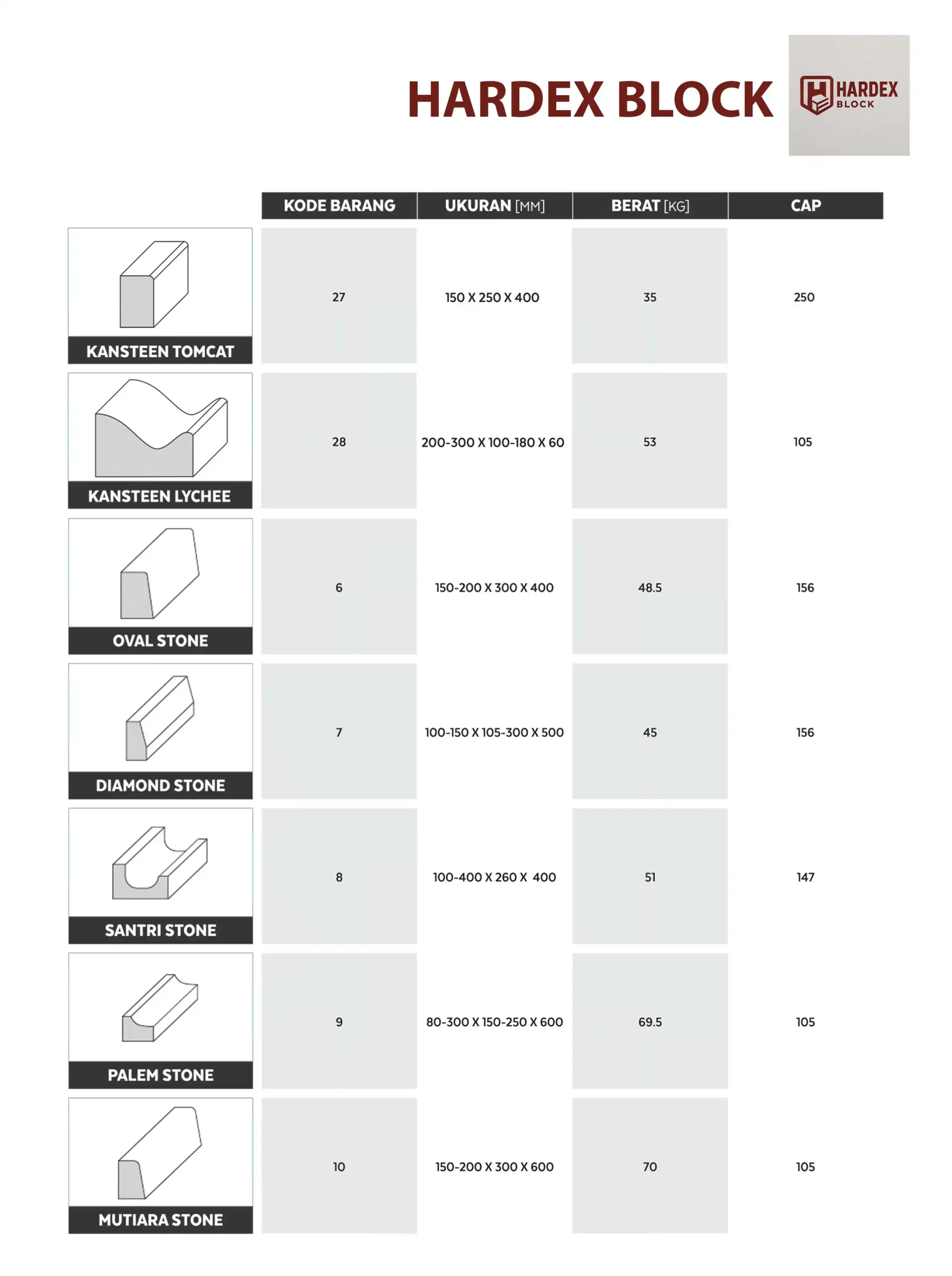 👉 Setiap jenis kansteen memiliki bentuk dan ukuran berbeda, sehingga bisa diaplikasikan sesuai kebutuhan estetika maupun teknis.